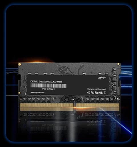 DDR4 RAM clocked at 3200 MHz, expandable up to 32GB using 1 x SODIMM slot.